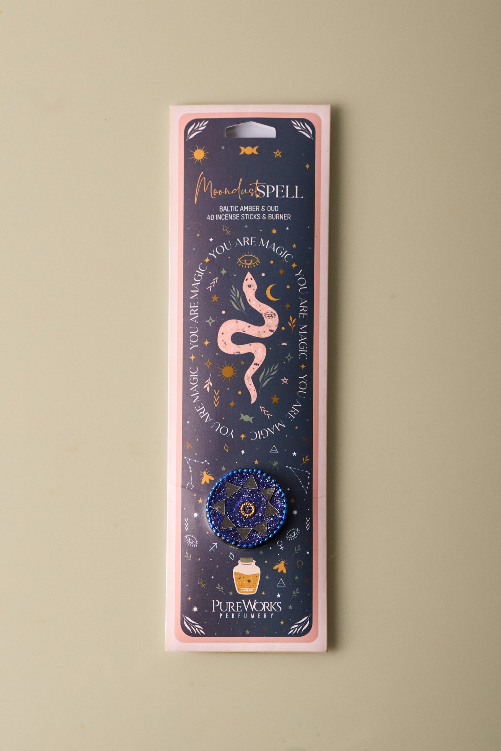 El Hechizo Polvo de Luna está inspirado en la energía suave y misteriosa de la luna llena. Su fragancia etérea aporta claridad, intuición y calma, ideal para rituales nocturnos, manifestaciones o meditaciones bajo la luz lunar. El porta-incienso incluido completa este pequeño altar personal para conectar con tu lado más intuitivo y mágico. Ideal para: