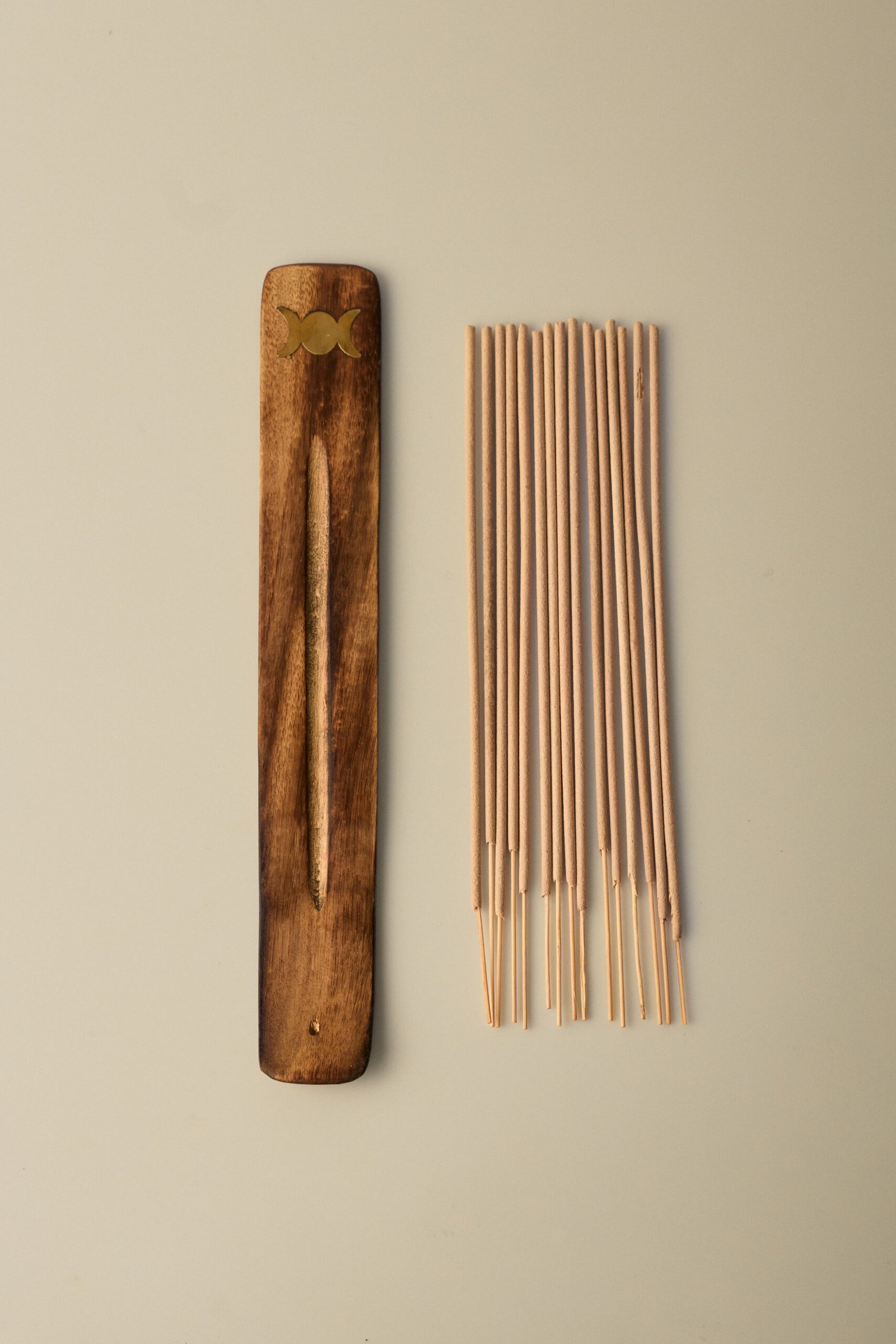 Enciende la punta de una varilla de incienso y apaga la llama. Coloca la varilla en un porta-incienso seguro sobre una superficie resistente al calor. No deje nunca el incienso encendido sin vigilancia.